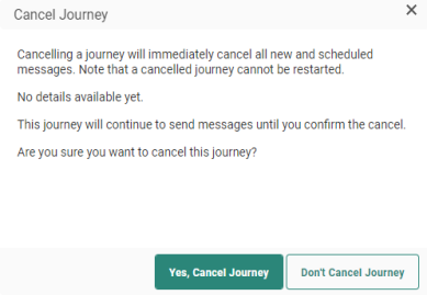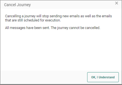 Note: When a Journey is canceled the user is presented different alerts, depending on the execution status of the journey.