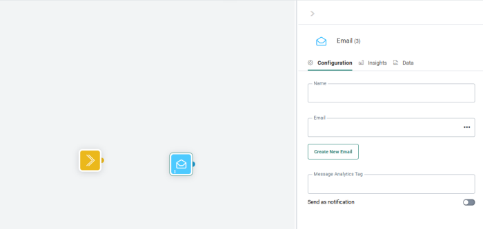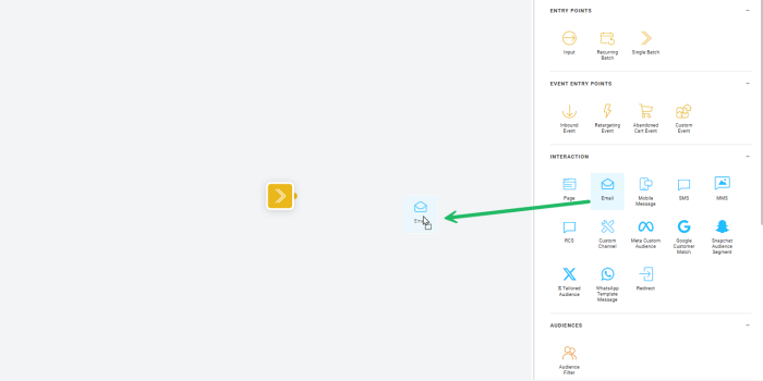 - Design — In Design mode, you can add content components to the journey and create events between these components.