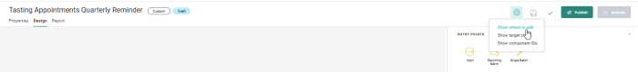 - Properties — Click to toggle to the journey properties panel. The Design panel is hidden and the properties are displayed in overlay.