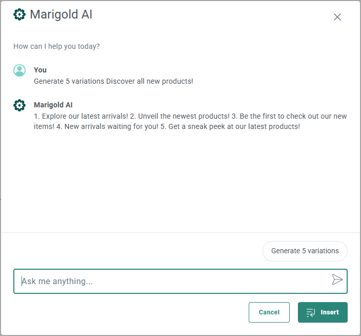 You can ask the AI to make your subject line shorter, re-write it, generate 5 based on the email content, or generate 5 variations based on the current subject line.