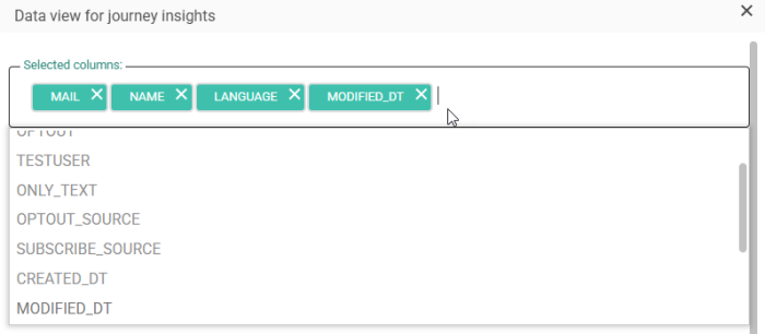 A default set of fields from the Audience List is provided, but you can add additional fields for an even more detailed view on these contacts. Click in the selected columns field to access the drop-down of all available Audience fields and select the ones to add to the overview: