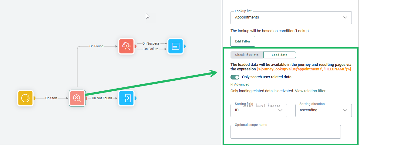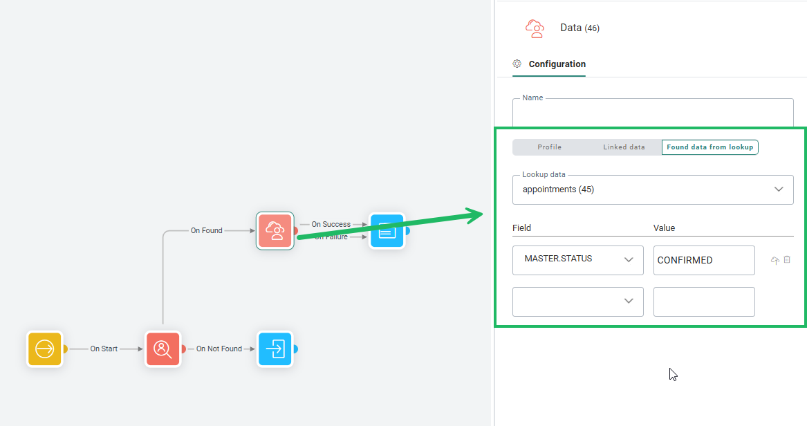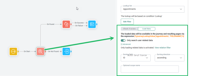 Example: In a Custom Journey, we want to retrieve an appointment from a Linked List, using the Lookup Component and a filter that only retrieves the appointment with a specific appointment ID.![]()