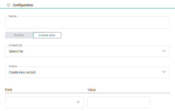 When selecting Linked data, records will be updated/created in a 1:n linked list. A filter is required to determine which records should be updated. The following needs to be filled out: