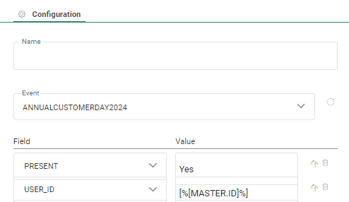 Enter a line in the Field-Value section for each field that should be updated in the current selected Custom Events List.