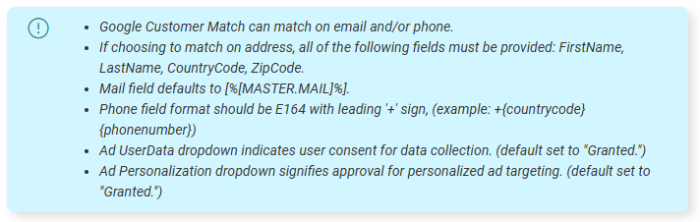 Note: Please be aware that you need to be compliant with Google's CCPA regulations, when using the Google Customer Match functionality.