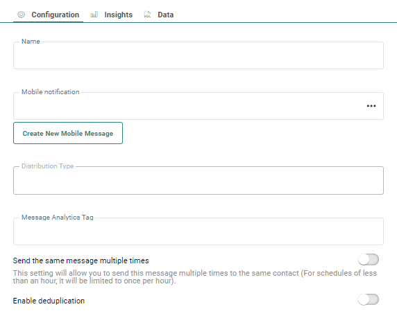 - Message Analytics tag — Optionally enter the value for the Analytics tag to pass to the tracker when activated.