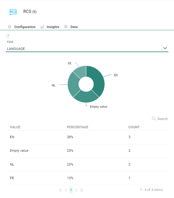 The Insights tab provides, in a pie -chart format, detailed aggregated insights on audience distribution based on a field selected from the Audience List.