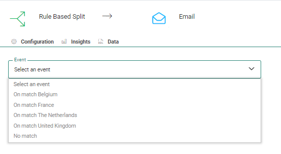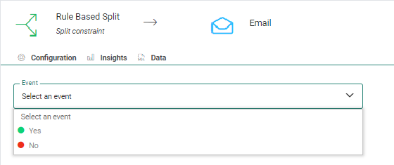 Split based on Custom Events — When using the Rule Based Split Component in an event-driven journey, it is possible to use the data from one of the fields in the Custom Events List to send contacts on a different path.