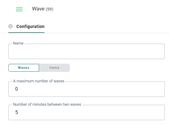 Number of minutes between two waves — The time between two executions. The time is calculated when the previous wave is executed completely. A minimum interval of 5 minutes can be set.