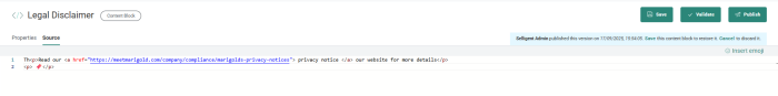 If you wish to continue, make the necessary changes and click Save, then Publish the Content Block.