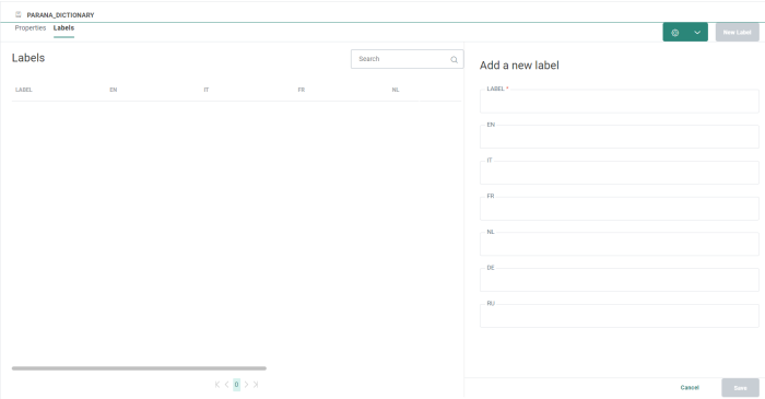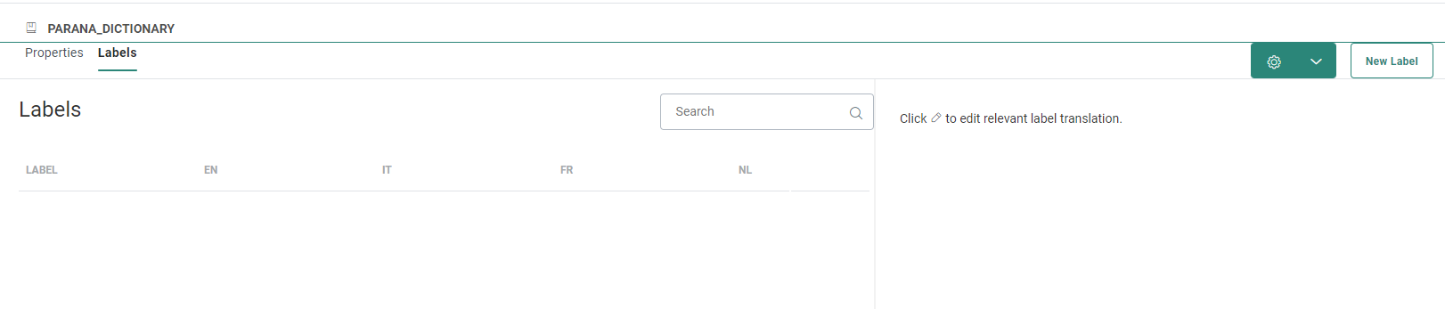 Once a dictionary has been created you can start adding the labels and their translations