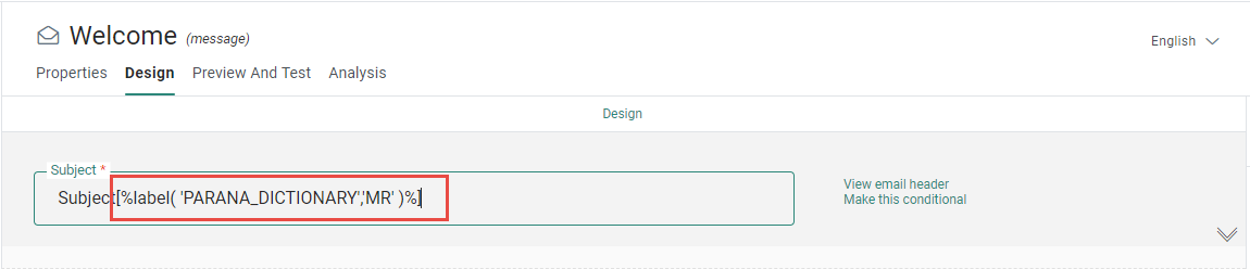 When [% label( 'PARANA_DICTIONARY','MR' ) %] is used in the message content, the following occurs :