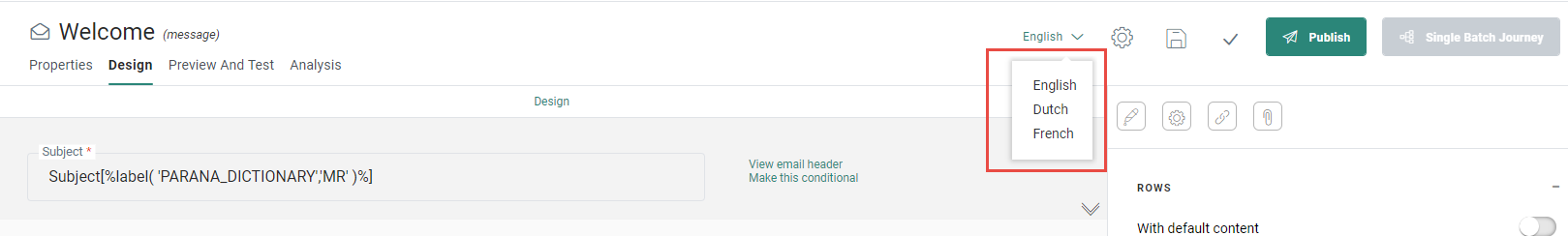 An email has content created in three languages: English (en-US), French (fr-FR) , Dutch (nl-BE) :![]()