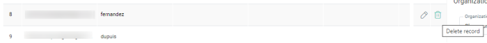 Note: Records can easily be deleted. Click the Delete icon in the table to remove a record (after hovering over a record with the mouse cursor).![]()