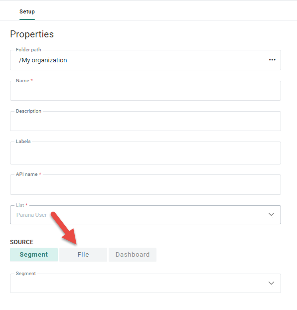 - When creating a static segment and selecting File as data source.