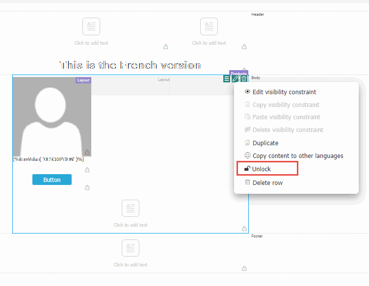 With this, the template creator and everyone that has access to the template, can decide which elements of the template can be modified by a user when creating a message. Locked elements in the template become read-only.