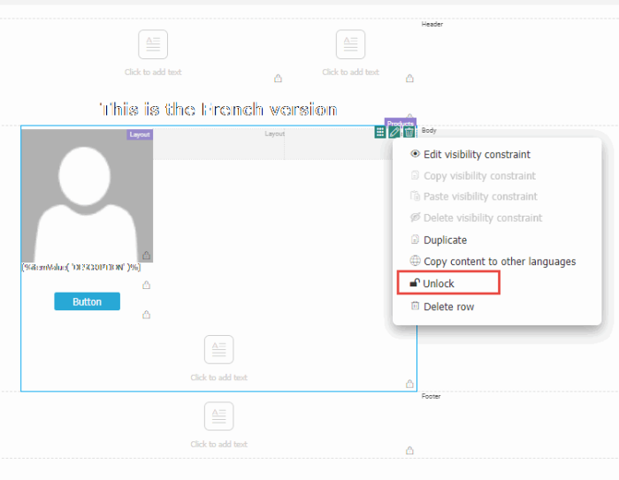 To set locking properties for the email header or global styling, click the Lock: