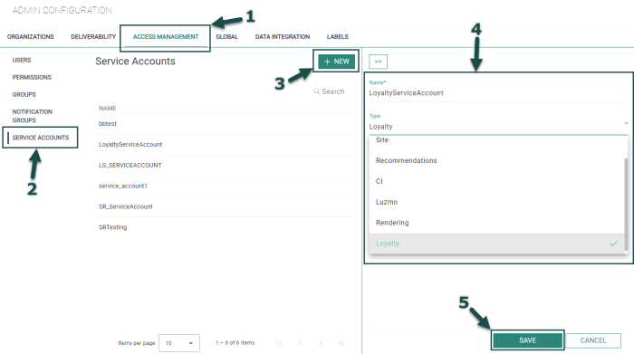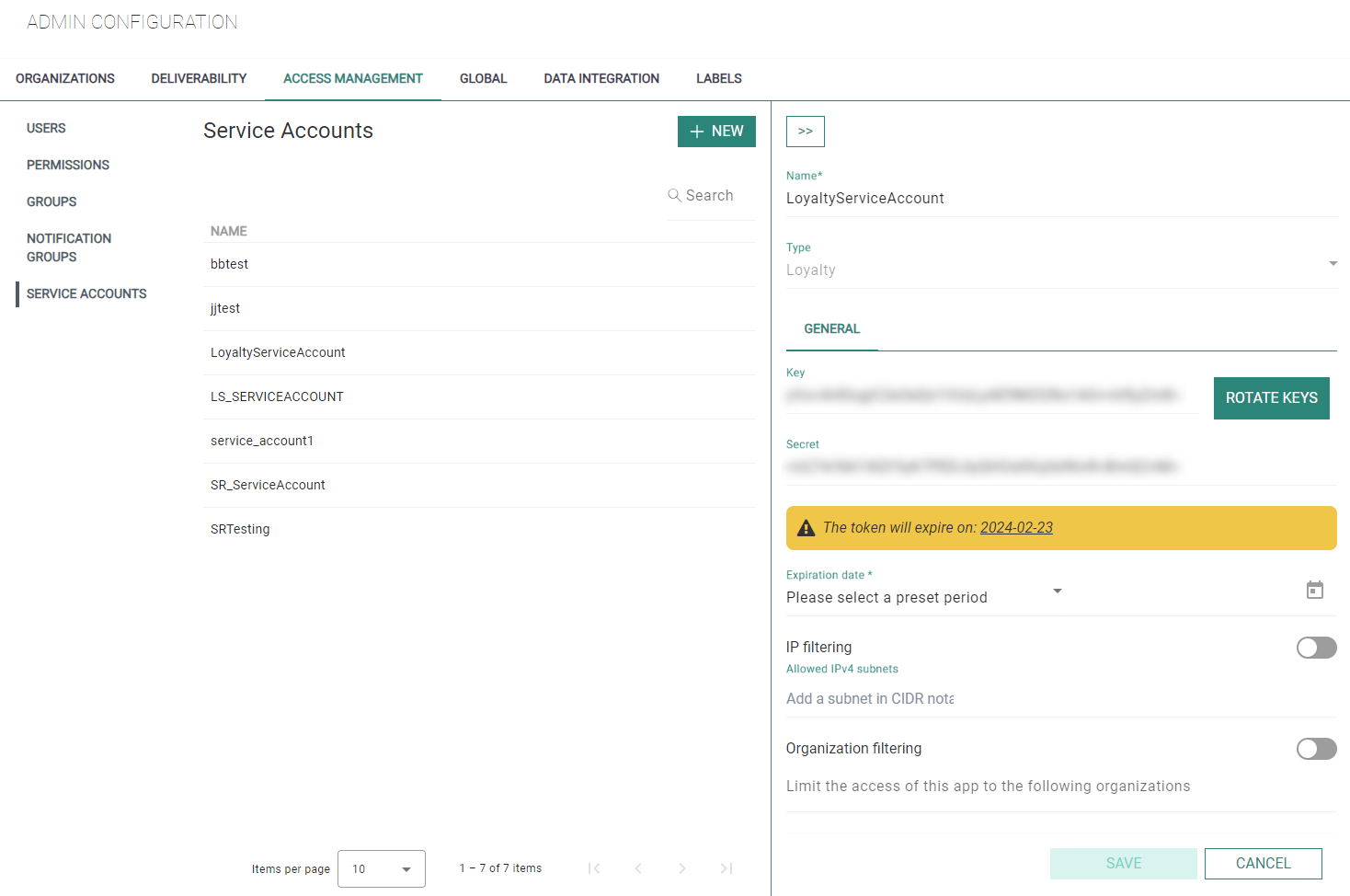 Therefore, it's necessary to create an API Service Account of type Loyalty in the Admin Configuration section of Selligent.