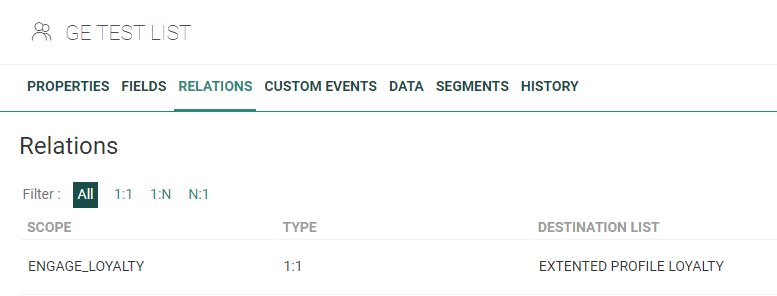 3. Add a 1:1 extended profile relation between both lists, and name the scope ENGAGE_LOYALTY.