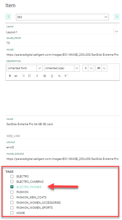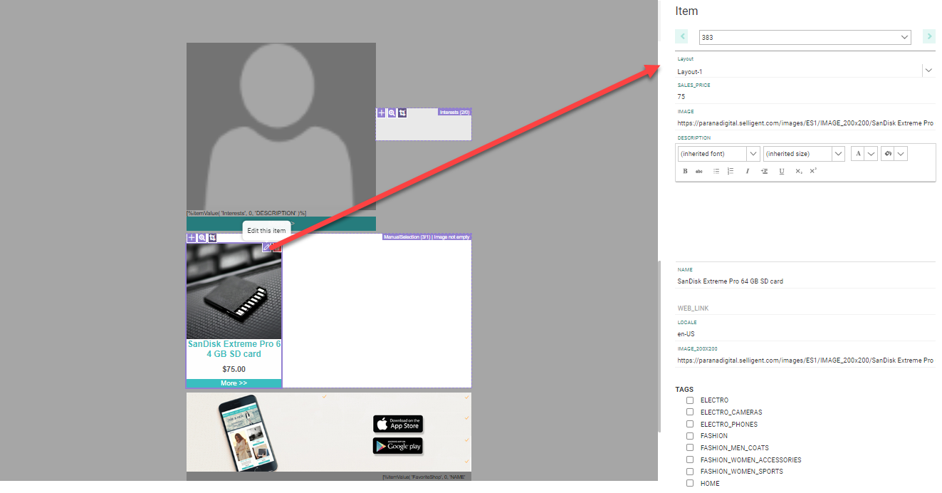 Note: When Interest Tags is activated for the environment, and a Tag list has been defined and linked to the Audience list, it is possible to select these interest tags when editing an existing item.