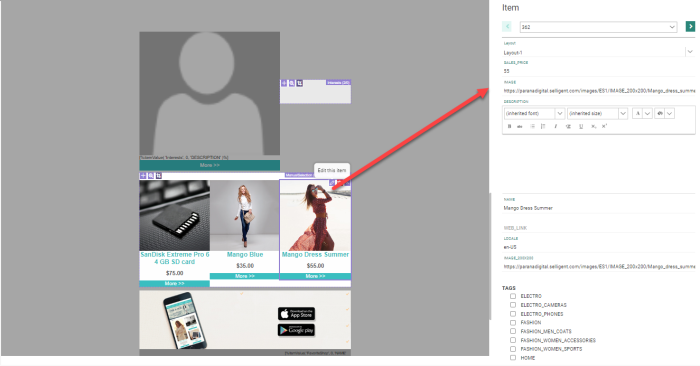 Click the Pencil icon to display the Item properties on the right and make direct changes in the data source: