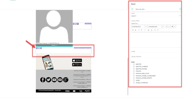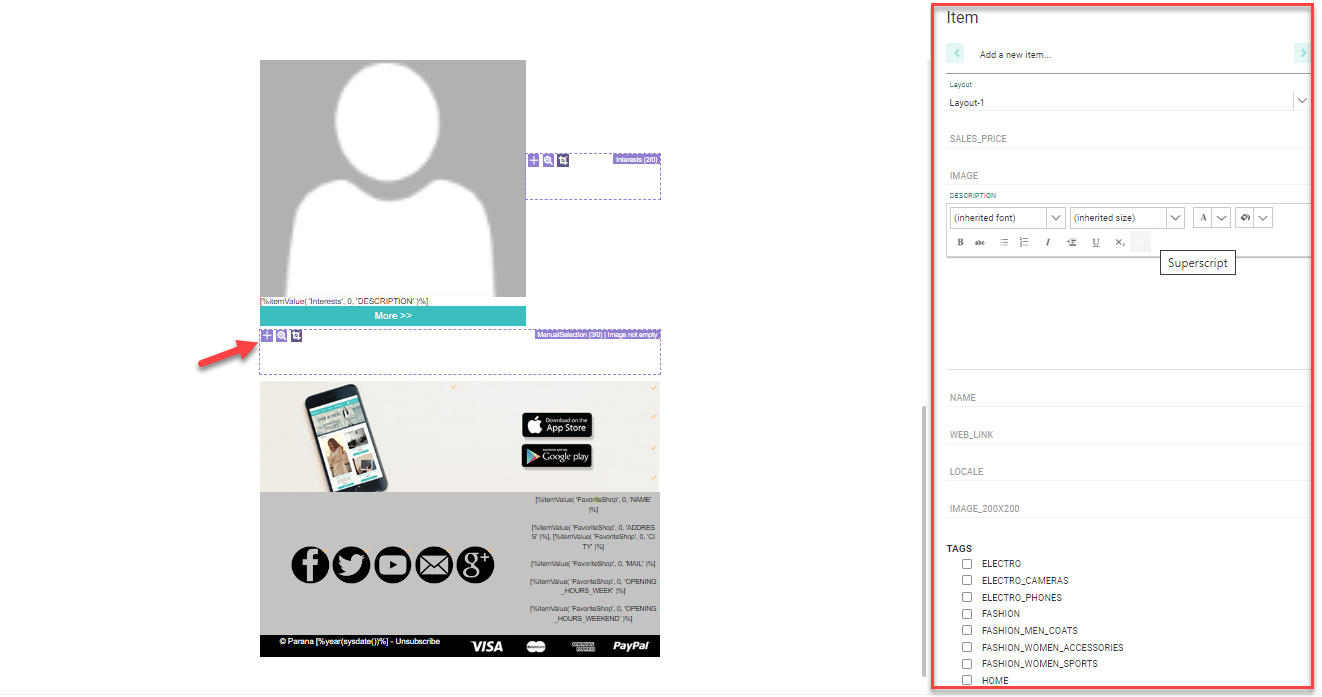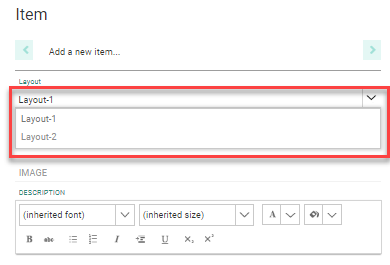 Note 2: When adding existing items to the repeater for which the layout needs to be defined in the message, you have to edit the added item and apply the correct layout in the properties on the right. A default layout is always applied.