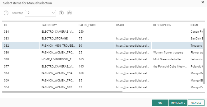 This is what the set up of the data selection looks like when allowing manually adding of items: