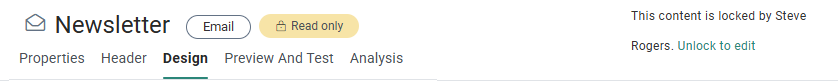 If the content is locked by another user, the toolbar allows toggling to the Edit mode. Unlock the content to be able to edit it.