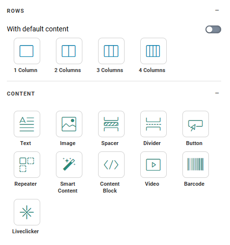 panel is displayed holding all possible layout and content components