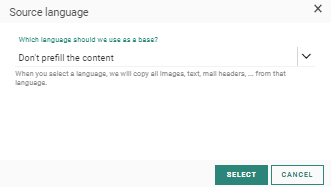 Note: When adding an additional language after the message is created, you are prompted if the content of the selected source language needs to be copied to the new language. This is optional. By default only the layout is automatically copied to the new language.