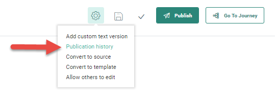 After publication, a History is available. Select the Publication history option from the actions drop-down menu.