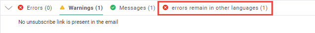 The first tab includes all errors and warnings for the current language. The other tabs only show specific errors, warnings or informative messages.