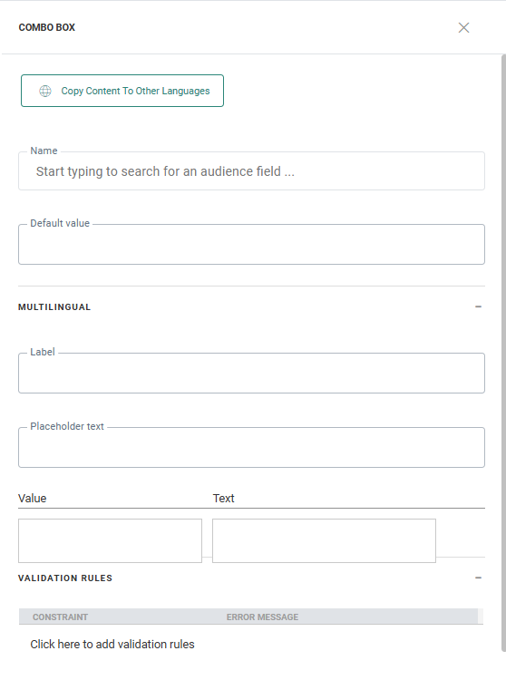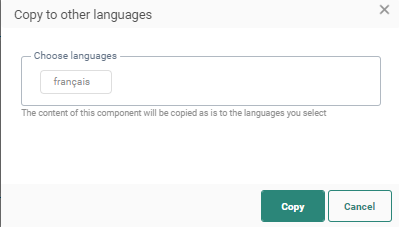 By default, when adding new Content Components to a message, only the structure of the component is copied automatically to other languages. However, using the function copy content to other languages, you can now copy the component with its content to one or more languages.