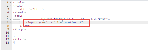An <input> tag of type text is added. The ID of the component is used in the Available components section on the right. It allows to easily identify the component in the list and access the properties.