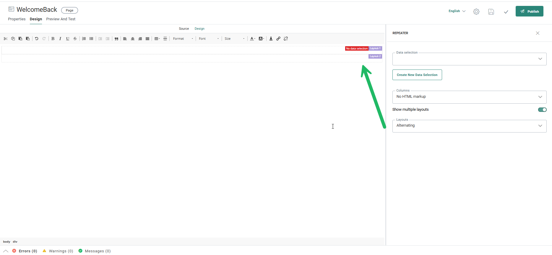 4. Set the properties of Layouts for this Repeater. By default, there is only one layout section.