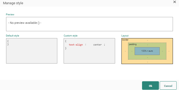 3. Define the styling properties of the text itself, such as the font used and the color. Choose a color for the Button borders. You can access the Style editor from here and make other changes as well directly in the CSS.