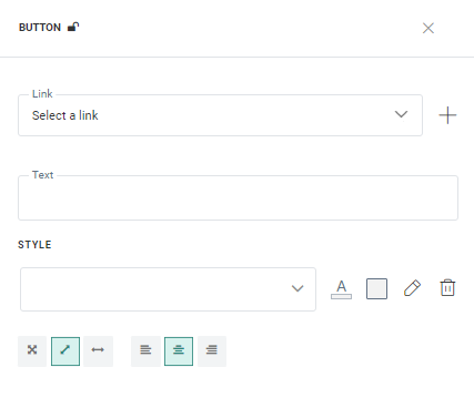 4. Use the layout options at the bottom to adapt the size of the Button (100% width or actual size which depends on the text inside the Button) and the position of the bottom (left, center, right)