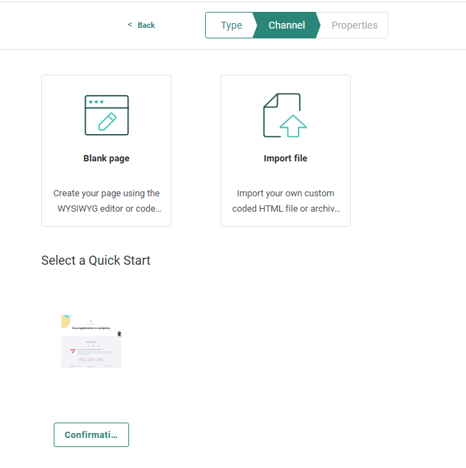 Or, when available, you can choose to create the page using a Quick Start page. By doing so, all properties from the Quick Start are copied to the new page. Note however that changes made to the Quick Start at a later stage do not impact the pages created from these Quick starts.
