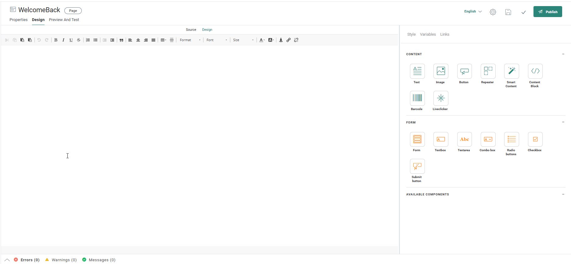 Selligent by Zeta web Pages can be created in HTML Source mode or in Design mode . You can enter the source code manually from scratch, or import an existing HTML file. A WYSIWYG editor lets you modify the page in a visual way.