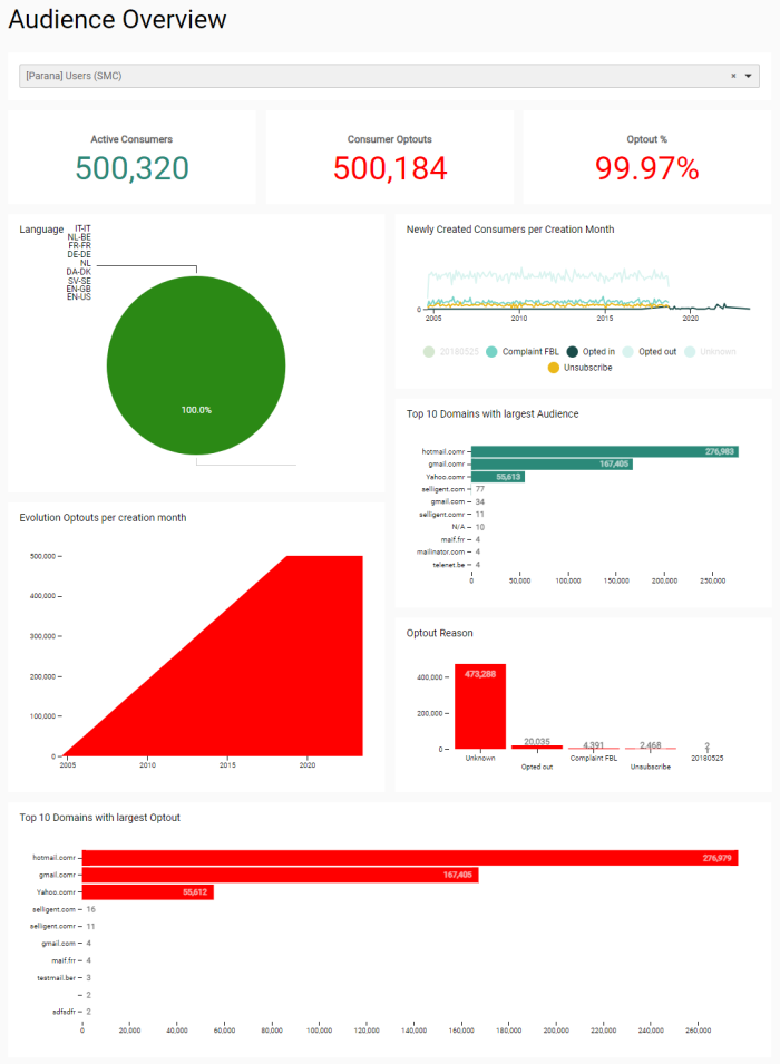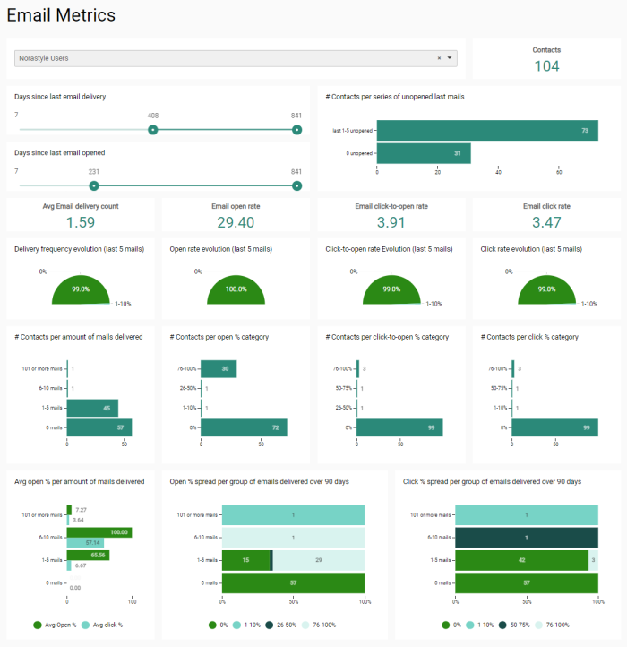 - Email Metrics — Dashboard showing email metrics of a selected target audience.