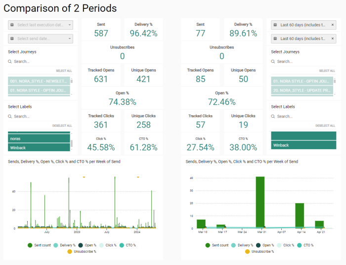 - Comparison of 2 periods — Compare multi-channel journey performance by periods for the same or different journeys.