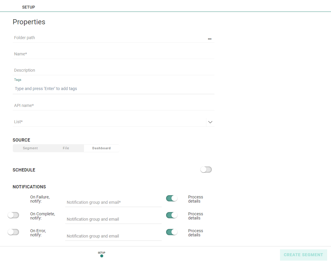 - Folder path — The folder path where the segment will be stored. You can select a folder from the folder dialog accessible from the three dots.