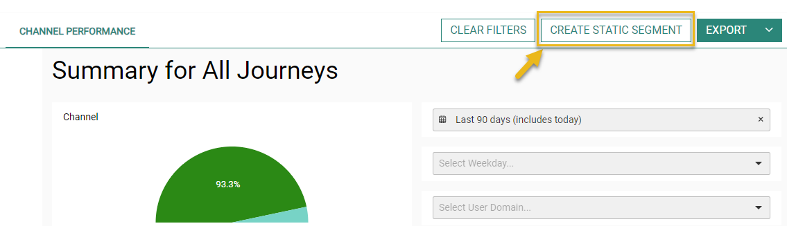 Note: At least one filter needs to be set to enable the button to create a static segment.