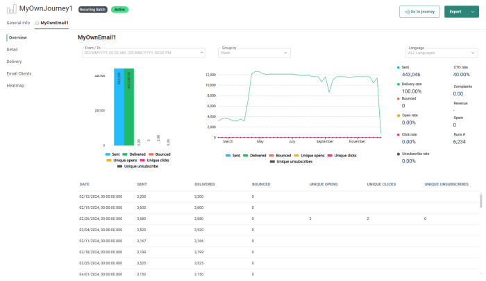 This will cause the email actions to be recorded as part of October's reporting in the Dashboard, but part of November's reporting in the Reporting tab.