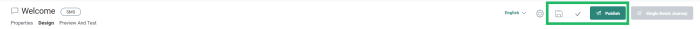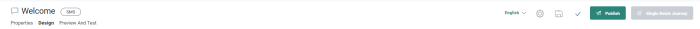 - Properties— Click to toggle to the SMS properties panel. The Design panel is hidden and the properties are displayed in overlay.