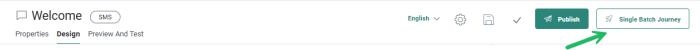 When the SMS content has been saved, validated and published, an additional button is available from the toolbar to create a Single Batch Journey from this content.