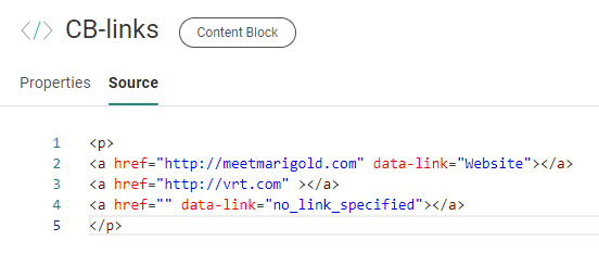 3. The last one contains no reference but the data-link attribute is specified. This link will be tracked and the user can edit the reference in the Links tab when the Content Block is used in a message.