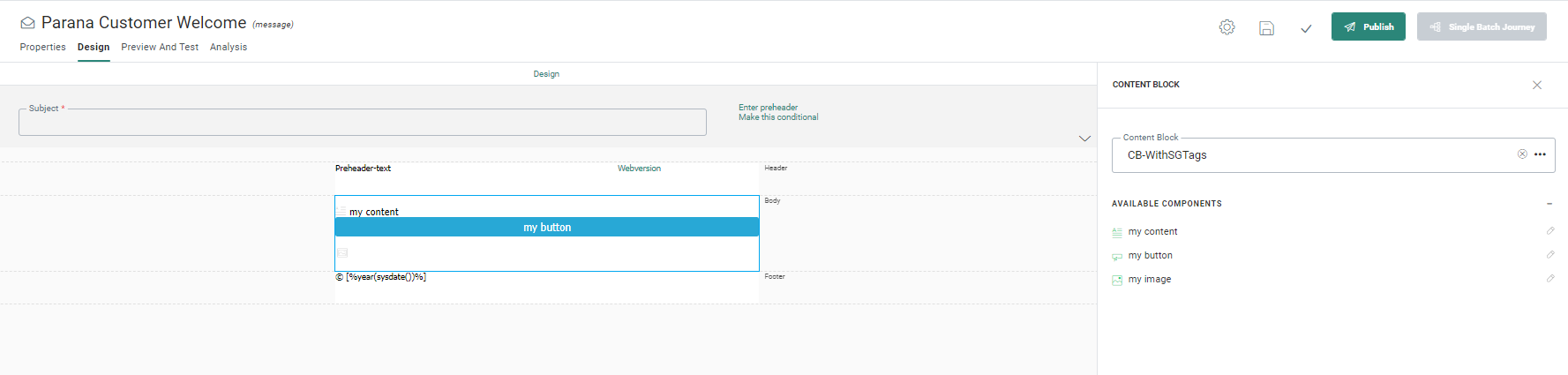 When this Content Block is used in a message, the different SG tags are listed and can be edited. ![]()