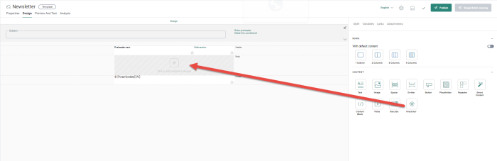 4. Add the Liveclicker campaign to your message. A link is automatically created in your message and visible in the properties of the Liveclicker component, together with the alt text:![]()