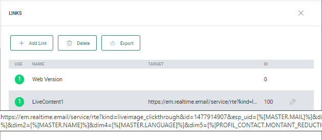 Note: By leaving the links unaltered, you will be able to benefit from full click reporting on the side of Liveclicker and Selligent.